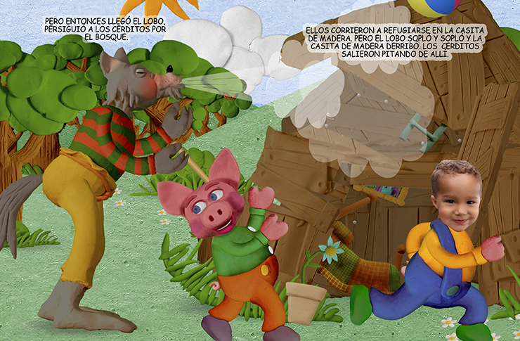 Cada página del libro personalizado infantil es una ilustración con volumen y no sólo un dibujo plano. Incluso puedes adquirir además las imágenes que desees por separado con o sin texto o algún texto diferente para hacer un protector de pantalla, un cuadro, almanaque, etc.