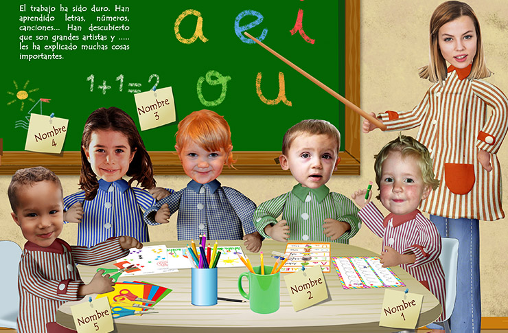 , la Foto de cada personaje se integra mediante fotomontaje con la finalidad de que en cada Cuento Personalizado quede un trabajo de primera calidad.